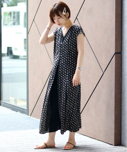 【2019SS】 JOINT WORKS今シーズンも引き続きトレンドの花柄のワンピース。 ヴィンテージライクな小花柄が今の気分にぴったりです。緩やかなAラインで、レイヤードがアクセントとして活躍します。 質感の異なる無地の生地をフロント部分にあしらうことで、小花柄のワンピースのボタンを開けても中に重ね着しているかのように!背中側にはシャーリング加工を施し、自然なギャザーを作りました。ウエストリボンは前後どちらでも結べるので、その日の気分でお好きなシルエットをチョイス。スニーカーでカジュアルに合わせても、サンダルでパンプスできれい目にスタイリングしても◎ 手洗い可能でご自宅でのイージーケアができるのも嬉しいポイント! ※取り扱いについては、商品についている品質表示でご確認ください。洗濯:手洗い可