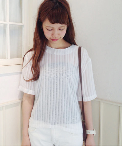 Kastane(カスタネ) 透け感が大人っぽいブラウス。今までと違うポイントは首が詰まっていること。それだけでグッと今年らしい印象になります。