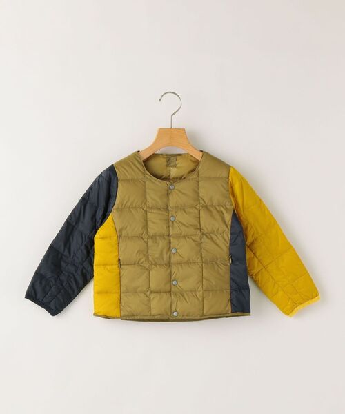 【taion(タイオン)】 ブランド名の由来は、体温(TAION)。 羽毛本来の温湿度調整機能が非常に高く、羽毛特有の臭いも少ない、 成熟した水鳥の優れたダウンを使用。 (ダウン90%フェザー10%) 650flp以上の良質なダウンを使用している為、 軽いのに反発力が良く暖かい点が特徴。 また、撥水加工により、雨や高湿度の環境下の使用でも羽毛の縮みを最小限に抑えています。 表地は、400T撥水高密度ナイロン生地を使用、撥水はもちろん、汚れもつきにくい仕上げになっています。 また、表地の裏面にACコーティング加工を施し、羽毛の吹き出しをできるだけ少ない環境にしています。 インナーダウンとしてだけでなく、アウターとしても着ていただけるルックスの良さで、タウンユースからアウトドアまで、幅広い用途に対応可能◎ 特に、こちらのSHIPS KIDS別注は、キッズならではの遊び心溢れるクレイジーパターンで、他と差をつけられるスペシャルな一枚に仕上がっています! コンパクトに持ち運びできるパッカブル仕様なので、すぐに着脱できる点も使い勝手良く魅力的です! <お取り扱い上の御注意> ・羽毛本来の優れた性質を維持する為には、最小限の通気性が必要となります。その為、若干の羽毛の噴き出しは避けられません。縫い目から羽毛が噴き出していたら、引っ張らずに表面を軽くつまんで押し戻してください。 ・生地表面の撥水効果は着用する度に弱まります。効果が弱まってきた際は撥水スプレーを使用する事をお勧めします。 ・末永く愛用頂く為に、アテンションタグ・洗濯ネームを必ずご確認の上、着用又はお取り扱い下さい。 ☆同モデルでインラインのご用意もございます。(品番:514-05-0249) ※画像の商品はサンプルです。 実際の商品と仕様、加工、サイズが若干異なる場合がございます。