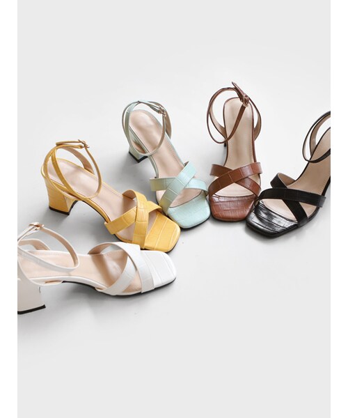 繊細なクラック感のパイソン素材がお洒落な サマーサンダルヒールを紹介します:) キレイなシェープがフットラインをさらにスリムで 女性らしい雰囲気に演出してくれるデザインです。 足甲のクロスストラップが安定感を与えてくれて、 スキンラインをある程度庇ってくれてウェアラブルに履きやすいシューズです。 足首バックルストラップで足の形に合わせサイズの調節ができます。 太ヒールラインで長時間履いても足の疲れが少ないです。 またインソールの全体もふわふわな履き心地が感じられます。 ノーマルなカラーから魅力的なポイントカラーまで、 総5種類の色で用意されてるので、 好みの色をチョイスして見てください♡