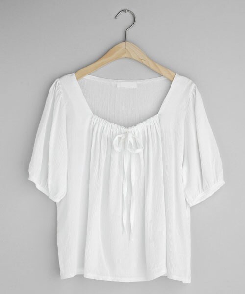 プチプラ¥2,181! 鎖骨がキレイに見えるスクエアネックのブラウス。 首元のギャザーとリボンが愛らしいデザイン♡ ※WEARに記載してある金額と、DHOLIC通販サイトに記載してある金額にシステム都合上、稀に誤差が生じます。正しい金額はDHOLIC通販サイトに記載された金額です。