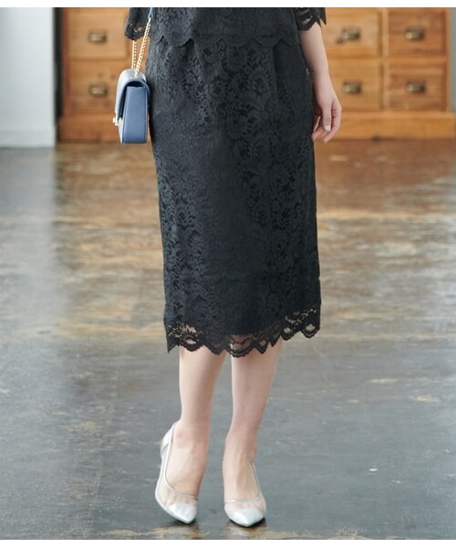 総レース仕立てのアイラインスカートが登場。通勤シーンにも活躍するエレガントなアイテムです。高めのウエストはダーツを入れ、きれいなフィット感を演出。お腹まわりをすっきりと見せます。バックスリット入りで歩きやすいのもポイント。裾に出るレースの透け感が大人っぽさを後押しします。・裏地つき。※ロケとスタジオの画像では光によって色の見え方が違う場合がございます。