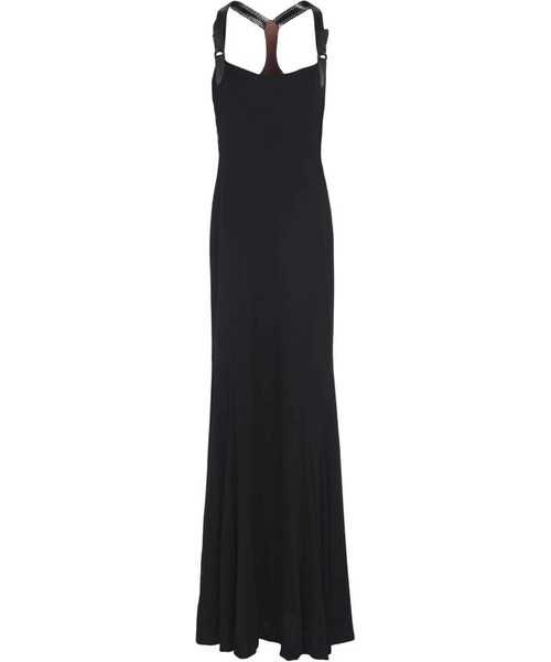 JEAN PAUL GAULTIER FEMME Long dresses. leather, jersey, varnished effect, tassels, solid color, collar with draped neckline, sleeveless, no pockets, fully lined, side closure, zip, contains non-textile parts of animal origin, dress. 100% Rayon, Sheepskin