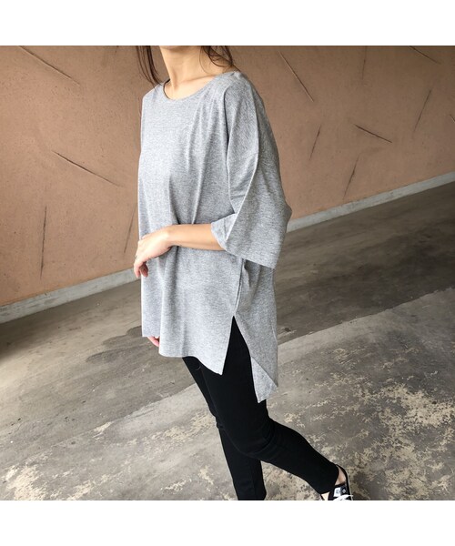 ゆったりシルエットが魅力のビッグTシャツです。 てろっとした落ち感に両サイドのスリットがスタイルアップ効果になります♪ デニム合わせはもちろん、ロングスカートと合わせてトレンドのゆるゆるコーデもおすすめです☆ ラフに着まわせるワードローブに加えておきたい一枚です。 ※モデル身長:161㎝ ◆クリックポストにて代引きをお選び頂いた方は、390円プラスさせていただき、宅配便代引きにて発送させていただきますのでご了承下さい。 ◆カラー ホワイト・グレー・カーキ・ブラック ◆サイズ 着丈:(前身頃)67cm(後身頃)73.5cm 肩幅:60.5cm 身幅:58cm 袖丈:20.5cm 裾幅:52.5cm 袖口:19cm 裄丈:53cm ※多少の誤差は予めご了承ください。 ◆素材 綿100% グレーのみ 綿85% レーヨン15% ※こちらの商品は海外縫製の為、多少歪み・縫製の甘さ(糸の出)などがある場合がございます。 予めご了承下さい。