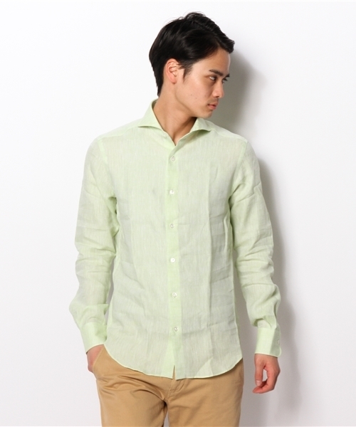 ◆nano・universe Library◆(ナノ・ユニバース ライブラリー) 『鮮やかなカラーリネンが魅力』 鮮やかな色合いのカラーリネンを使用したシャツが入荷しました。 フロントの釦を外しても衿型が崩れず、美しい形をキープするカッタウェイカラーも魅力です。 リネンは通気性・吸湿性に優れているので、これからの季節にぴったりです。 model:H178 B85 W74 H89 着用サイズ:46