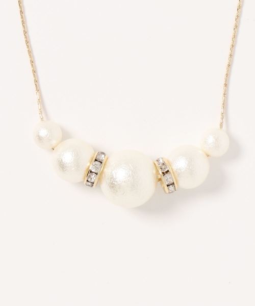 表面にニュアンス感のあるパールビーズとビジューパーツを並べたネックレス。華奢なチェーンが女性らしい首元を演出し、スタイリッシュで洗練された印象を醸し出します。デイリーカジュアルにはもちろん、パーティスタイルにも使えるので、備えておくと重宝すること間違いなしです。 ● AMERICAN HOLIC ● (アメリカンホリック) 大人の女性の毎日を軽やかで豊かにするブランド。 カジュアルなのにオシャレ、コーディネートも楽。ONにもOFFにも等身大で楽しむオトナの日常着をテーマに、スタイリッシュかつ自然体を楽しめるカジュアルスタイルを提案します。 ▼ 商品のお気に入り登録がおすすめです ▼ 商品ページ内のハートマークをクリック。完売時の再入荷や、最後の1点の通知、コーディネート画像がアップされたとき、お得なお値下げの際の通知を受ける事ができます。 【お知らせ】ページでも通知が確認できます。