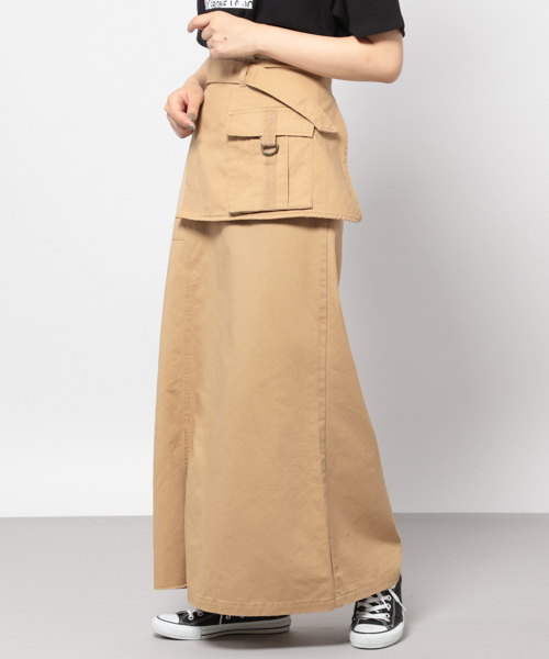 トレンドのエプロンベルトが付いたミリタリー風スカートエプロンベルトは取り外し可能で、外すとシンプルなスカートとして着用可能です。Iラインに近いAラインシルエットですっきり縦長見えが◎ 蹴まわしがあるのでナローより足さばき良く履きやすいスカートです。しっかりした肉感の綿ツイルですが、固くなく履きやすい素材です!※撮影環境により、光の当たり具合で 色味が違って見える場合があります。 あらかじめご了承下さい。