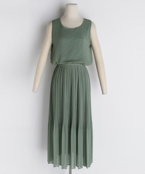 涼しげなスリーブレスワンピース♪ ふんわりと揺れるプリーツ仕立てが女性らしい一枚。 ※WEARに記載してある金額と、DHOLIC通販サイトに記載してある金額にシステム都合上、稀に誤差が生じます。正しい金額はDHOLIC通販サイトに記載された金額です。
