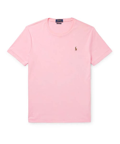 Polo Ralph Lauren 's Pima cotton-jersey T-shirt is shaded a light sorbet pink that's nice and summery. The emblem on the chest is embroidered in colourful threads. Shown here with RRL jeans, Common Projects sneakers. - - Light-pink Pima cotton-jersey - Ribbed crew neck, embroidered designer emblem - 100% Pima cotton - Machine wash - Imported