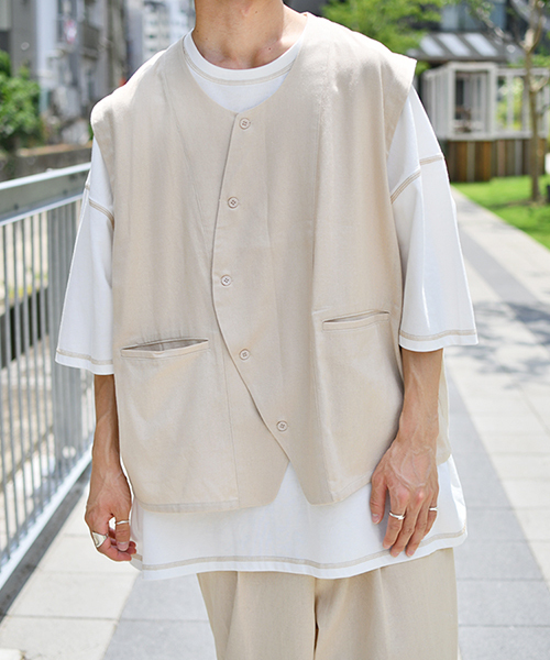 ※ご覧いただく環境により、 実物と色味が異なって見える場合がございます。 ご了承ください。 夏のベストがリリース! リネンの涼しい素材感とデザイン性あふれるオシャレなベスト! シャツの上から、Tシャツの上から、様々なシーンで活躍してくれるアイテム! 1枚羽織るだけで印象がガラッと変わるリネンベスト。 同時発売の【ブランド品番:846419 リネンパンツ】と合わせて セットアップで着て夏を楽しむのもオススメです! 【お買い物をよりお楽しみいただくために】 ▼商品のお気に入り登録(ハートマークをクリック) 完売カラーの再入荷通知や、ラスト1点の通知、セールの通知も受けることができます。 ▼ブランドのお気に入り登録 新商品や再入荷など、いち早くブランドのお得な情報を受け取ることができます。