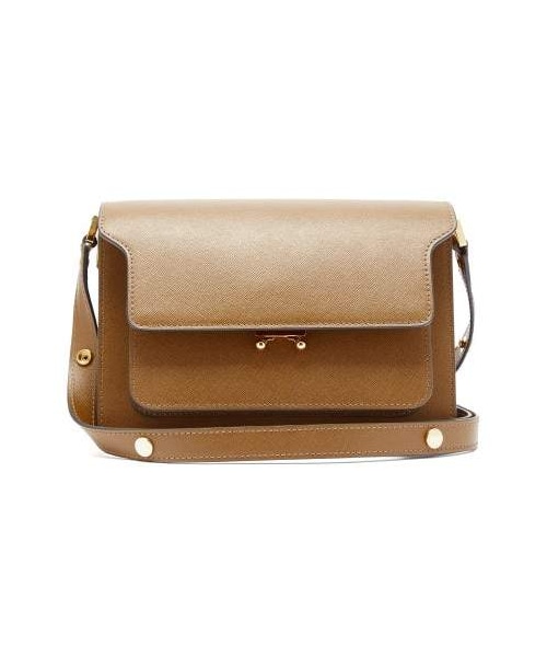 Marni - Marni’s signature Trunk shoulder bag is reworked for Pre-AW19 in brown saffiano leather. Crafted in Italy with an accordion construction, it has an adjustable strap with logo-engraved gold-tone metal press-studs and a push lock which unfastens to reveal slip and zipped pockets within. Coordinate it with earthy hues for a contemporary edit.