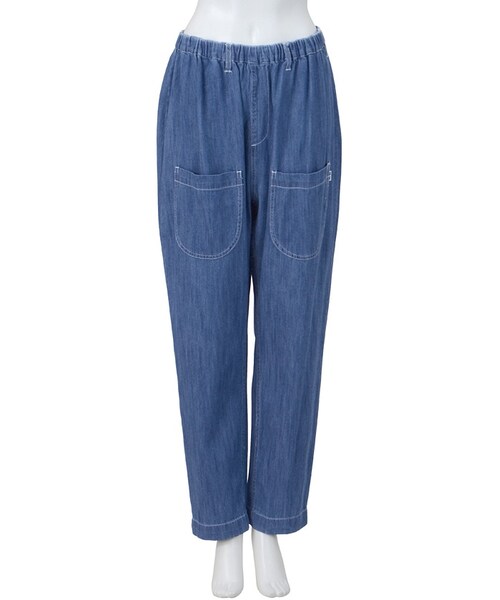 中肉のデニム素材を使用したフルレングスパンツ。もも部分に付いたポケットが特徴。この製品は独特な風合いを出すため、製品加工を行っております。1点ごとにサイズや風合い等、特徴が異なりますのでご了承ください。Torso:H163.5 B80 W58.5 H86 着用サイズ:02サイズ