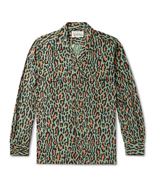 Wacko Maria works a good amount of leopard-print into every collection - we chalk it up to the label's love for rock music and the irreverent attitude that goes along with it. This camp-collar shirt has been made in Japan from smooth cotton and has back pleats that make it a little roomier across the shoulders. Shown here with Wacko Maria T-shirt, Junya Watanabe trousers, Vans sneakers. - - Green, black and orange cotton - Camp collar, buttoned cuffs, chest flap pockets, back pleats - Button fastenings - 100% cotton - Dry clean - Made in Japan