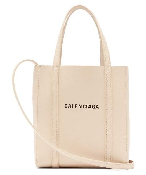 Balenciaga - Balenciaga’s beige Everyday XXS bag offers a small-scale tote silhouette equipped with a cross-body strap for added versatility. It’s crafted from grained leather with the house’s logo printed in black across the front, while the black lining houses slip and zip pockets and the two top handles reach down either side for a touch of extra dimension. Style it with a shirt and skirt for daytime sophistication.