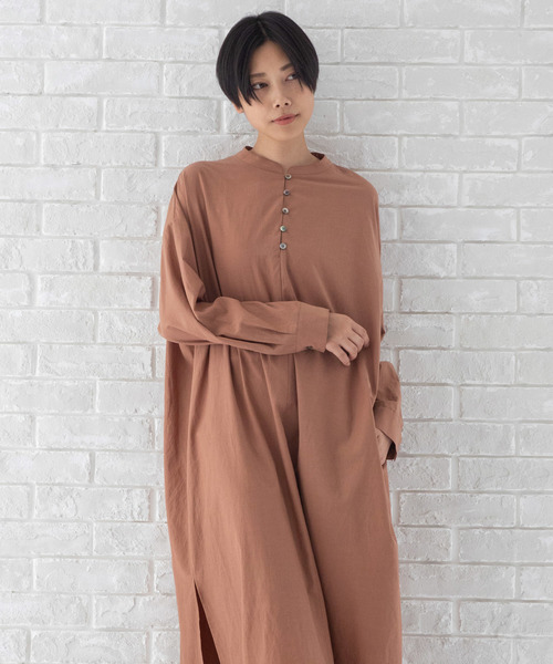 ◆春先に活躍してくれる旬なビッグシルエットシャツワンピース◆ <MATERIAL> 細番手のリヨセルとコットンの糸を高密度に織り上げ、柔らかさと適度な張り感を持ち合わせたブロード素材です。 コットンの持つ肌触りの良い表面感にリヨセル特有のフィブリル感が加わったいつもよりワンランク上の上質感をお楽しみいただけます。 少しビンテージがかった風合いも特徴で、薄手のシャツですが秋っぽさを感じていただけます。 おしゃれ感がありつつ嫌みのないストライプ柄がビンテージ感をさらに高めてくれます。 <DESIGN> オーバーサイズで肌離れを計算したビッグシャツドレスになります。 リラックス感のあるサイジングと、しっかりと上質な生地のアンバランスがとてもアーバンなMunichらしいシャツドレスです。 フロントのボタンはループ止めで華奢な印象に仕上げております。 後ろ裾はシャツラインのカーブで仕上げて、サイドに深めなスリットを施しております。 計算されつくしたアンバランスが袖を通すと実感できるデザインになっております。 シャツのキレイな落ち感が肩からゆるりと下がるのでビッグシルエットですがすっきりと程よいボリュームで楽しめます。 一枚でワンピースを堪能しても、レイヤードスタイルで着こなしも可能なアイテムです。 レギンスなどでゆるゆるリラックスコーデを楽しんだりアレンジもしやすいデザインです。 <COLOR> ■ネイビー×ホワイト(ストライプ柄):爽やかな清涼感ある明るいブルーですがホワイトラインが柔らかさをプラス。明るすぎず暗すぎずの秋冬コーデになじむブルーです。 ■ベージュ(ストライプ柄):肌馴染みのいい明るいベージュ。ホワイトラインで程よいスタイリッシュさも味わえます。優しい印象のキレイなベージュです。 ■シナモン(無地):くすんだアプリコットオレンジのようなこっくりと温かみのあるシナモンカラーになります。暖色の女性らしいカラーになります。 ■カーキ(無地):オーソドックスに一般的なカーキですが素材感の上質さで武骨過ぎず適度なクールさが特徴なカラーです。 ■ホワイト×ブルー(ストライプ柄):白の爽やかさに薄いネイビーブルーラインで華やかさもプラスされたカラーです。モアレ効果でグレイッシュにも見えるお色味です。 *お取扱いについては、商品についております品質表示にてご確認ください。 洗濯:洗濯機使用可 .............................≪INFORMATION ≫............................ ▼商品のお気に入り登録▼ 『♡』マークを押してお気に入り登録して頂いた商品は、セール開催の通知やクーポン発行などの キャンペーンなど、お得な情報をいち早く受けとる事が出来ますので、ぜひご登録ください。