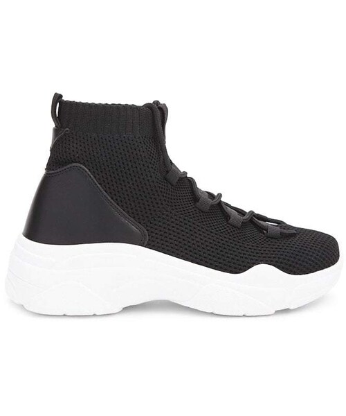 Details A pair of mesh knit tennis shoes featuring a high top, faux leather trim, lace-up front, almond toe, ribbed trim, and a grip sole. Content + Care - Padded insole, textured outsole - Upper: 100% polyurethane - Lining: 100% polyester - Outsole: 100% EVA Size + Fit - Heel height: 2.2" - Shaft height: 6.2"