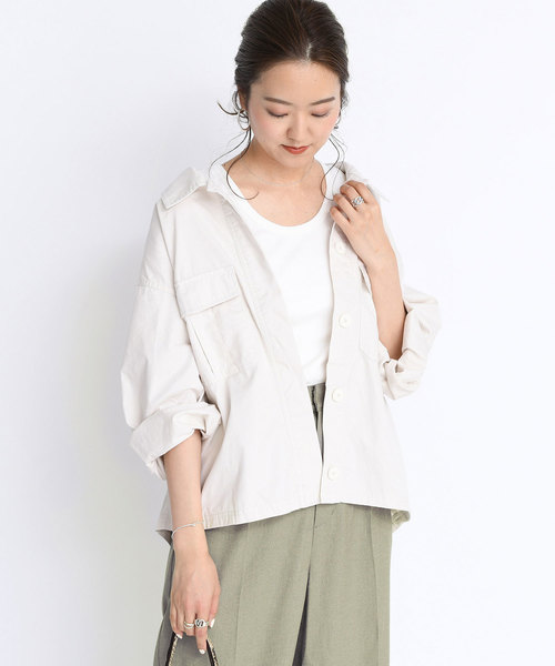 コットン100%の清涼感のある風合いが、シーズンライクなシャツブルゾン。胸元両サイドにあしらったフラップポケットでワークテイストに仕上げ、スタイリッシュな印象に。シャツとしても着ることができ、フロントボタンを外して羽織り風にも着られるので、マルチな活躍が期待されます。