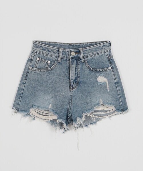 春夏コーデにプラスワンしたいデニムショートパンツ★ 大胆なダメージ加工がオシャレなアクセントになった1枚です。 シンプルなトップスに合わせるだけでスタイリッシュに決まります。