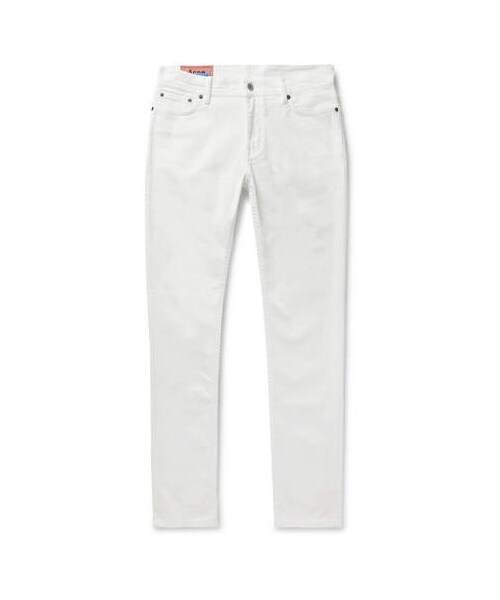 Acne Studios ' 'North' jeans are cut in a skinny profile from cotton-denim blended with a touch of stretch to ensure they're flexible, as well as to prevent any sagging at the knees. Team them with a sweater and patterned overshirt. Shown here with Acne Studios overshirt, Acne Studios sweater, Albam T-shirt, Acne Studios sneakers. - - White stretch-denim - Belt loops, five pockets - Button and zip fastening - 98% cotton, 2% elastane - Machine wash - Made in Italy