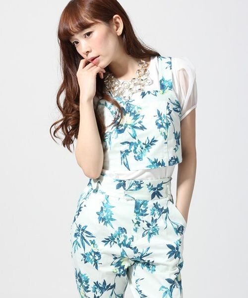 バックにゴムが入り、とても着やすい形のビスチェ。お揃いの柄のトラウザーもあるので、セットアップでスタイリングしても可愛いです!ブルーのボカシ柄とホワイトベースの草花柄で、どちらも季節感のある柄になっています★