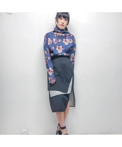 前面が3枚重なったパネルレイヤースカート 片面が黒、反対面が銀という軽いナイロン生地を使用、スポーティで近未来的なタイトスカートです。 脇ファスナー、後ろベルトのみゴム入り。 MODEL 身長 cm MATERIAL ナイロン 100% SIZE FREE ウエスト 48~68cm 身幅 39cm 着丈 73cm BALMUNG(バルムング) デザイナー:Hachi 「都市と人間との関係の中から触発され循環する過程である。 都市と人間との関係の中から触発され生産された結果である。 都市と人間との関係の中から触発され原動力とする探求である。 都市と人間との関係の中から触発され積み重なる研究である。」 概念としての「灰色」を表現したい。 1984年生まれ福岡出身。高校過程で電子制御工学科、服飾学校で服作りを学んだ後、自身の服作りBALMUNGを始める。 2008年友人たちと空間展示会「dinner」を行ったことにより初めて服を発表する。 2010年にパリの展示会に初参加。 2011年にロンドンでインスタレーション発表。