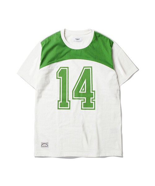 L/S Vintage Football Shirt를 S/S T-shirt로 변형하여 제작된 Espionage 2014 S/S Season 'Silent Majority For Peace'의 Tittle S/S T-shirt 입니다.밀도 높은 100% Cotton 20수 싱글원단을 사용하였으며 세탁 시 수축 및 변형을 최소화하고, 손 세탁 시 자연건조 후 구김을 최소화하기 위해Pre- Shrunk 및 덤블가공처리 하였습니다.제품 제작 시 영감을 얻었던 실제 60년대 NFL의 선수 Y.A Tittle의 백넘버인 '14'번을 전면에 날염처리하였으며풋볼셔츠의 소소한 디테일을 적용하여 오리지널 풋볼져지의 느낌을 적절하게 담아내고자 하였습니다.또한 풋볼셔츠의 특징 중 하나인 가슴 절개를 라운딩된 디자인으로 사용하였으며 투톤컬러의 배색으로 포인트를 주었습니다.