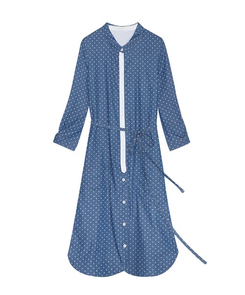此款為正常版型熱銷襯衫長洋裝系列!水玉點點丹寧襯衫洋裝,可愛俏皮的經典時尚款,附上同色系綁帶可繫出腰身曲線,可當長洋裝或是開襟外套穿搭,時尚感十足