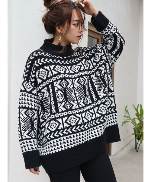 手編みのようなざっくりしたローゲージニット。チュニック丈でヒップが隠れるのでリブフレアレギンスでも、ショートボトムスで合わせても可愛いです。今年らしいブラウンカラーがおすすめです。