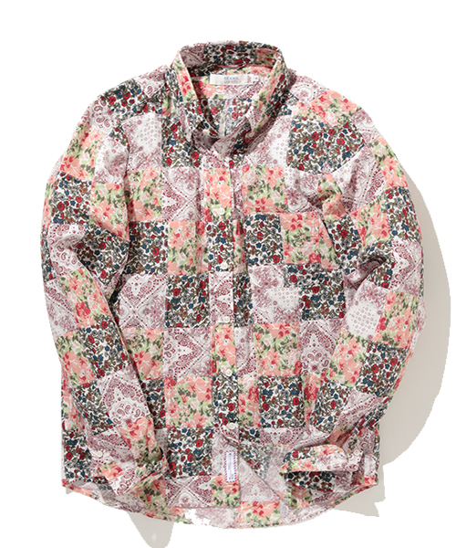 花柄、カモ柄、ペイズリー柄のパッチワークシャツ。 インパクトのある柄ですが、シルエットが細見ですのでスタイリッシュに決まるアイテムです。 Model:H180 B83 W68 H88 Size:M 店舗へお問い合わせの際は下記品番をお伝えください。 品番:51-11-0309-901