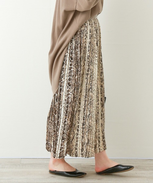 パンチのあるパイソン柄のプリーツワンピースは 今から秋にかけてコーディネートに使えるアイテム♪