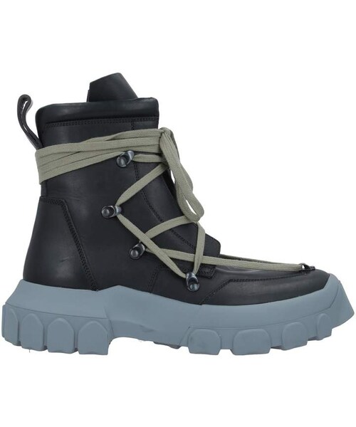 RICK OWENS Ankle boots. leather, no appliqués, solid color, zip, round toeline, flat, leather lining, lug sole, contains non-textile parts of animal origin, combat boots. Soft Leather