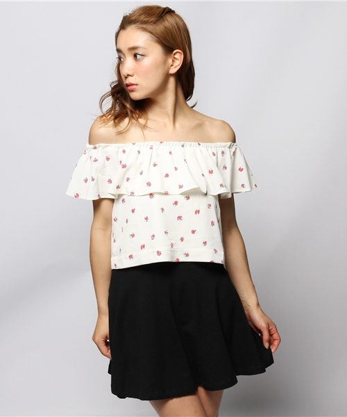 ●フラワープリント オフショルダー ブラウス● デイリーにはもちろん、海やリゾートにもピッタリのオフショルダーブラウス。ひらひらとしたフレア具合がとてもキュート。ヘルシーなデコルテ見せで大人のスタイリングを。 model H160 B82 W58 H83 着用サイズ:ONE SIZE