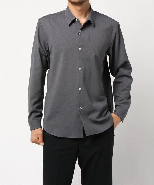 【吸水速乾性・透け防止・UVカット】機能付きの天然調合繊素材で仕立てた、品の良い羽織りシャツ。Material機能付きの天然調合繊素材。吸水速乾性、透け防止、UVカットと、晩夏に必要な機能はすべて備わっています。シャリ感あるドライタッチが特徴で、しわになりにくく携帯にも便利です。Design素材感を生かした羽織りとしても使えるシャツ。Tシャツとボトムだけで決まらない時に、軽く羽織るだけで品の良いスタイリングに格上げてしてくれる便利な1枚。