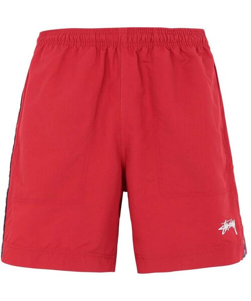 STUSSY Shorts. solid color, logo, side seam stripes, drawstring closure, multipockets, high waisted, regular fit, techno fabric, wide leg. 100% Nylon