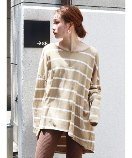 【特徴】 定番のカラーボーダーのロングスリーブTシャツ。 やわらかい素材を使用し肌触りや着心地のいい1枚。 ビッグサイズでヒップも隠れるサイジングがラフな印象で体型カバーにも使えます。 【スタイリングポイント】 今季はニットパンツと合わせてトレンド感あるスタイリングがオススメ。 ベルトでウエストマークしてバランスを取るとマッチします。 ・・・・・・・・・・・・・・・・・・・・・・ 透け感:なし 裏地:なし 伸縮性:あり 光沢感:なし 生地の厚さ:普通 ・・・・・・・・・・・・・・・・・・・・・・ 【※お取り扱い上のご注意】 この商品は洗濯や着用中の摩擦、汗、雨等で色移りする事があります。 摩擦により下着、バッグ、ソファー等に色移りする場合があるのでご注意ください。