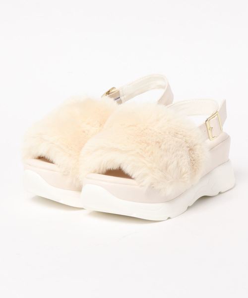 フェイクファーのボリュームとスポーティなプラットフォームがマッチしたファースポサンが登場。サッと履けるバックゴム仕様で、着脱ラクチン。ベルト裏や、中敷きはクッション仕様で足当たりも柔らかいサンダルです。【素材・サイズ感】S~LLの4サイズ展開。靴下合わせもしやすい秋カラーにマッチしたカラバリです。