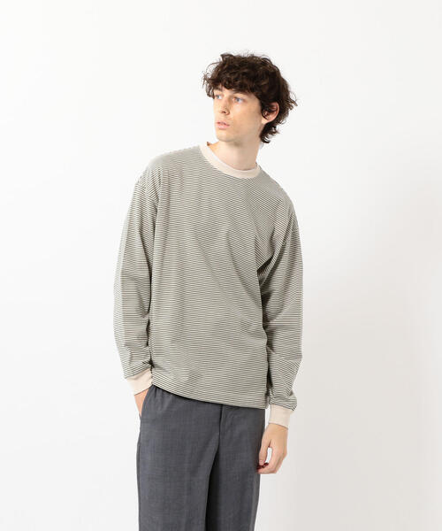 装飾を省いたシンプルなマイクロボーダー柄のクルーネックプルオーバー。 袖口とネックの切り替えがアクセントになります。 程よくゆとりのあるシルエットはリラックス感があり、1枚で着ていただいても今年らしい雰囲気に仕上がります。 柔らかな風合いは着心地もよく、インナーとしてもおすすめ。 大人らしいシンプルなカジュアルスタイルに最適なアイテムです。 店舗へお問い合わせの際は、全国のSteven Alan各店舗まで下記の品名/品番をお申し付け下さい。 品名:○SA L/HI-DENS BOR RNGR 品番:8112-241-0218 スティーブンアラン、stevenalan
