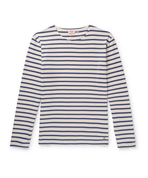 Armor Lux makes everything out of its dedicated workshop in Brittany, France, so you can be confident in the quality of this tee. Cut from cotton-jersey, it's striped just like old-school marinières and simply finished with a discreet designer emblem. Wear yours with denim and sneakers. Shown here with Barena shirt, A.P.C. jeans, Vans sneakers. - - Navy and cream cotton-jersey - Crew neck, designer emblem - 100% cotton - Machine wash