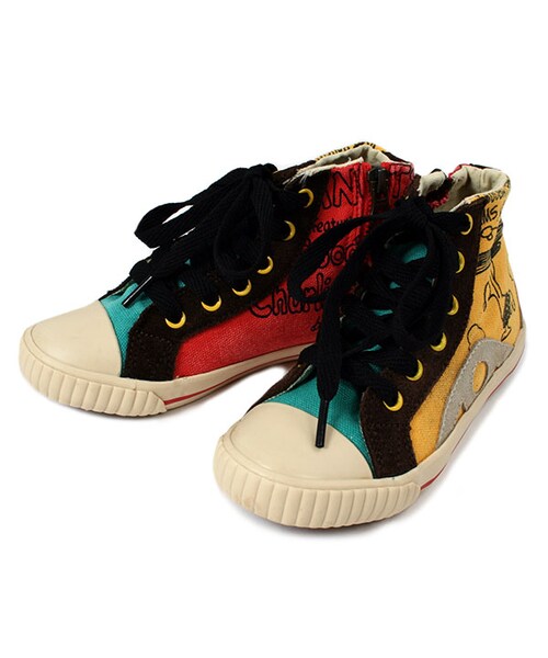 キッズからオトナまで人気のPeanutsシリーズに、マルチカラーが新しい、サーフアップのコミック柄のハイカットシューズが登場致しました!15~22cmまではヴィンテージPeanutsにピッタリのアンティークゴールドのファスナーで着脱ができるので、小さなお子様でもラクチンです!※大きい柄の為、柄の出方が商品1点1点異なります。柄はご指定頂けませんので予めご了承下さい。※23cmからはファスナー開きはございません。※画像は18cmのシューズです。