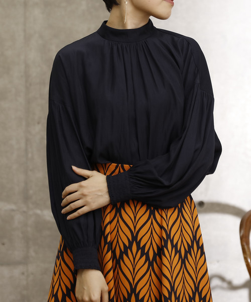 柔らかで、自然な縦落ちがあり、ヴィンテージ感が出るのが特徴のハイネックギャザーブラウス。 しなやかな肌触りで、着心地も抜群です。ハイネックも高すぎないことで圧迫感もなく、肌が見え抜け感を出して頂けます。 きちんと見えながら、光沢感が強すぎないので、デイリー使いしやすくなっています。 カラー展開も柔らかい女性らしいカラーからベーシックなカラーまで、4色展開です。
