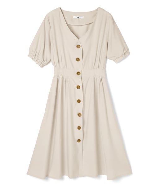 フロントのボタンがカジュアルなアクセントになったワンピース。 ウエストデザインが腰高スタイルを叶えてくれる。 フレアシルエットが女性らしさをアピールできちゃう。 Vネックで顔周りをシャープに見せてくれるのも好ポイント。