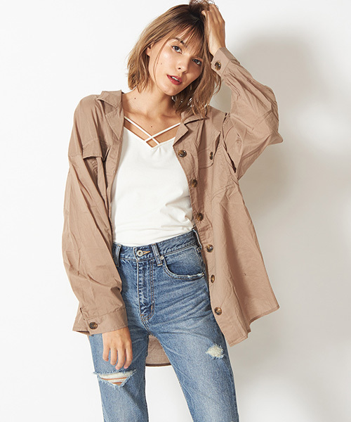 オーバーサイズがこなれ感を演出し、ワンランクUPな着こなしへと導きます。ニュアンシーな色味のボタンやフラップ付きポケットも、メリハリを添えるカギ。薄手のコットン生地で仕上げた、清涼感のあるルックもポイント◎シンプルに徹したデザインで大人モダンな雰囲気に仕上げたシャツは、ONOFF幅広く着回せ、デザイン性のあるボトムスなどとも相性よく決まります。