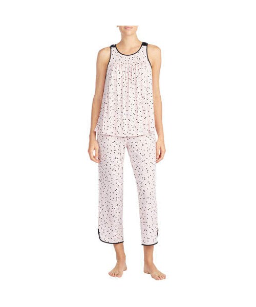 kate spade new york "Evergreen" pajama set in polka dots. Crew neckline; bow details at shoulders. Sleeveless. Relaxed silhouette. Includes matching cropped pants. Modal/spandex. Imported.