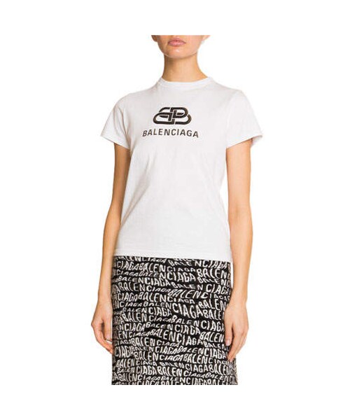 Balenciaga T-shirt in cotton jersey, featuring contrast BB logo graphic. Crew neckline. short sleeves. Fitted. Straight hem. Cotton. Made in Portugal.