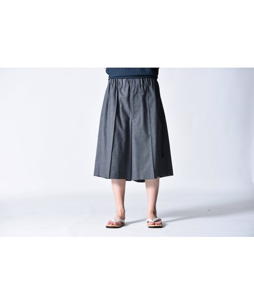 ワタリ幅がオーバーにとられたハーフパンツ。 ウエスト部分の紐ゴムで着脱イージーの利便性も備えた一着。 柔らかく、ハーフの丈で清涼感のあるパンツになっています。 股上が深く取られているので、女性のハイウエストでの着用もオススメ。 ウエスト紐でサイズ調節可能。 「タンブラーウール」シリーズのトップスとセットアップになります。 男女共にご着用いただけます。