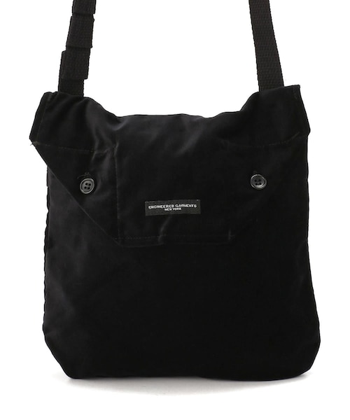 コットンベルベット生地を使用したフラップポケット式のショルダーポーチ。マチ幅がなくスリムなシルエット、普段使いに便利なサイズ感です。フラップはボタンにより開閉できます。ストラップの縫い止めをほどくことで、長さの調節ができます。【Engineered Garments/エンジニアド ガーメンツ】1999年NYにてブランド設立。「本物」や「着心地」にこだわって、デザインから生産までの殆んどの工程をアメリカ、NYで行っています。アメリカの洋服文化、なかでも30から70年代のクラシックテーラリングやスポーツウェア、ワークウェア、ミリタリーユニフォームなどの優れた素材やディテールを再構築し、本当にアメリカらしい製品、完成された未完成品を作ることをテーマとしています。デザイナーの鈴木大器氏は2008年CFDAとGQ誌によって新設された「THE BEST NEW MENS WEAR DESIGNER IN AMERICA」賞を受賞。世界からも注目されるデザイナーの一人です。