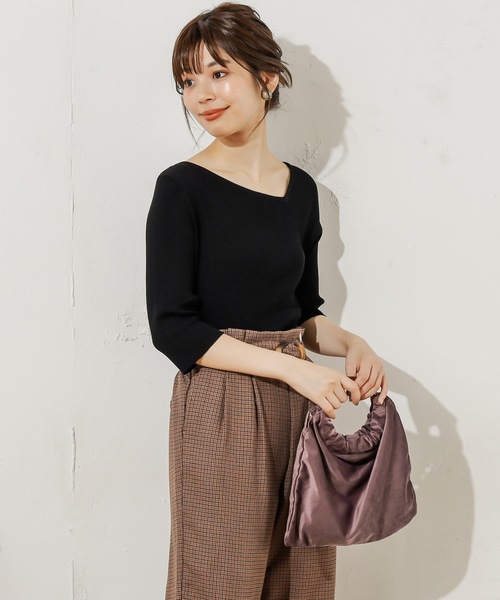 【2019AW natural couture】春に大人気だったワンショル風ニットが秋冬Ver.で登場!今季も大注目のワンショルダー。インナーが見えないぐらいの程よい肌見せが大人の女性にもぴったりな1枚となっております。身体にフィットしすぎず伸縮性があるので着心地も良いのがポイント。リブ素材が縦にスッキリと見せてくれ、女性らしいシルエットを演出してくれます。1枚で着るのはもちろん、薄手の生地感なのでジャケットやコートのインナーなど幅広いコーディネートに活躍します。