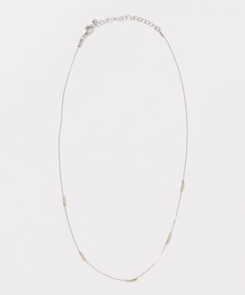 バイカラーのミニスクエアビーズをリズミカルにあしらったショートネックレス。肌に品良く映える繊細なデザインが、女性らしいエレガンスを引き立たせる好ディテール◎メイン使いはもちろん、手持ちのアクセと合わせたレイヤードコーデもおすすめです。● AMERICAN HOLIC ● (アメリカンホリック)大人の女性の毎日を軽やかで豊かにするブランド。カジュアルなのにオシャレ、コーディネートも楽。ONにもOFFにも等身大で楽しむオトナの日常着をテーマに、スタイリッシュかつ自然体を楽しめるカジュアルスタイルを提案します。 ▼ 商品のお気に入り登録がおすすめです ▼商品ページ内のハートマークをクリック。完売時の再入荷や、最後の1点の通知、コーディネート画像がアップされたとき、お得なお値下げの際の通知を受ける事ができます。【お知らせ】ページでも通知が確認できます。