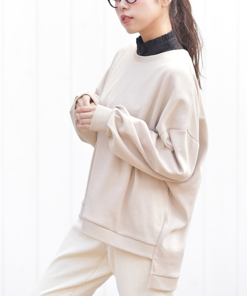 ラフに着られて華奢見えも叶うビッグスウェット たっぷりのサイズ感で華奢見えが狙えるビッグプルオーバー。 しなやかな肩のラインを演出するドロップショルダーも抜け感のあるスタイリングを作ります。 リラックスして着られるので普段使いにピッタリ。 段差をつけた裾がスタイリングをすっきり見せてこなれ感も与えます。 ボリュームのある袖が手元を女性らしく仕上げます♪ カジュアルスタイルにピッタリな無地とボーダーのカラバリ。 裏地なし 伸縮性あり 薄手 織りキズやだま等みられる場合もございます 洗濯:手洗い可