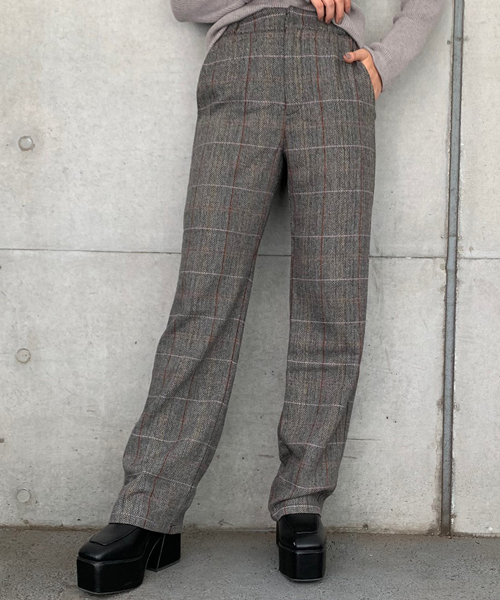 起毛感のあるウォーミーな風合いのウールパンツは、チェック柄で上品トラッドに